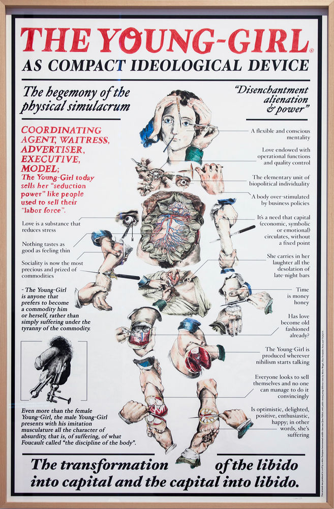Prenent com a punt de partida el llibre ‘Preliminary Materials for a Theory of the Young-Girl ' de TIQQUN, aquest projecte investiga fenòmens relacionats amb les relacions afectivo-sexuals a les societats urbanes contemporànies d'occident, establint vincles entre el model de relacions que trobem a qualsevol metròpoli europea i el model econòmic neoliberal. En ambdós casos, la llibertat de mercat condueix a un comercialisme excessiu i a un esperit d'acumulació, tant en l'aspecte monetari com en l'acumulació de cossos. Aplicant el llenguatge financer als afectes i els cossos, els dibuixos mostren una esquematització dels processos que condueixen a aquesta terrible condició del cos com a mercaderia.