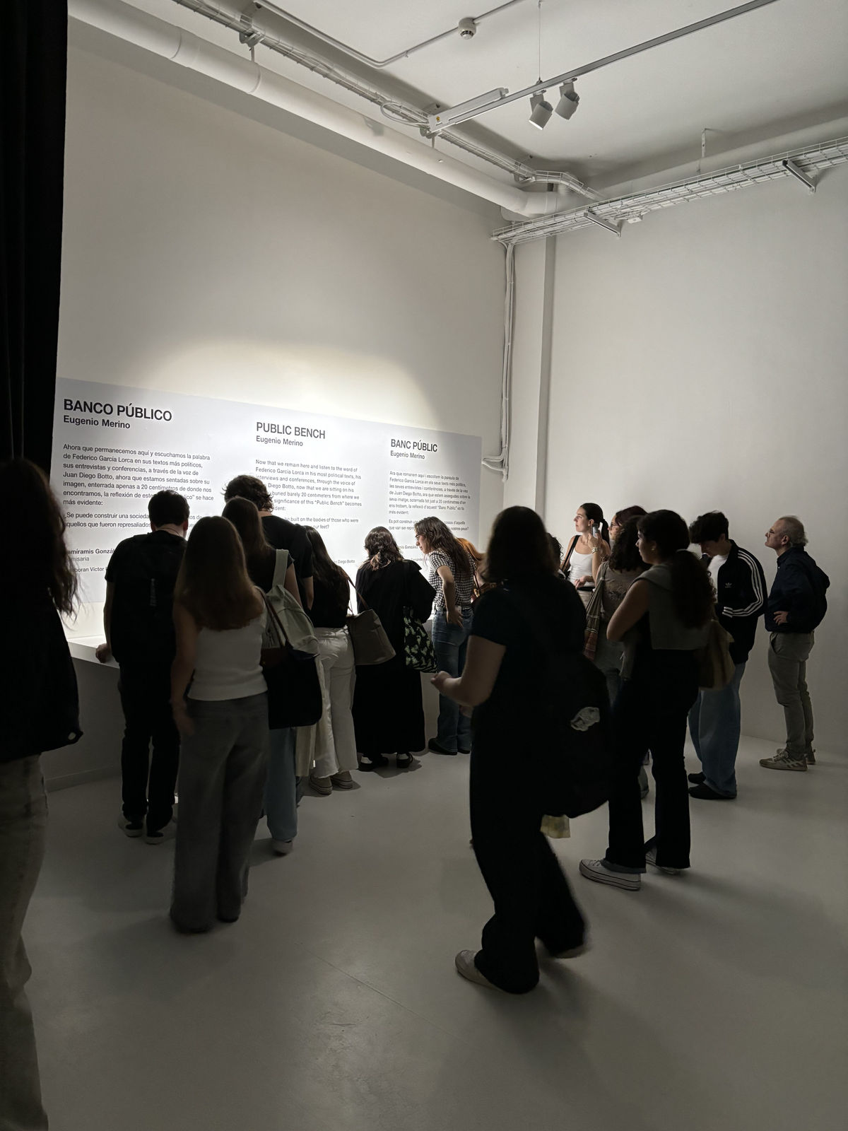 Students of the UB communication degree visit the solo exhibitions On flesh and ether: Picasso, Miró and Tàpies by Julio Anaya and Public Bench by Eugenio Merino.