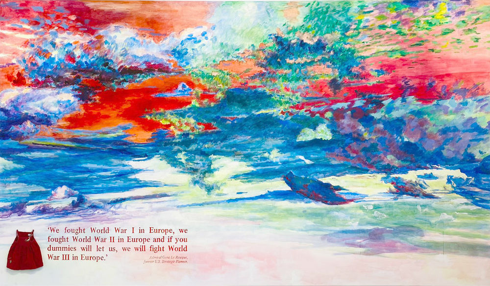 In 1981, a group of women chained themselves to the fence of the Royal Air Force base at Greenham Common (United Kingdom), to protest a decision by the British government to keep US nuclear missiles there. This led to the formation of the Greenham Common Women’s Peace Camp, which fought for the same cause. The missiles were removed in 1991, but the camp remained operational until 2000 to protest the Trident nuclear missile program. Margaret Harrison visited the camp on several occasions. “The fence itself was almost a piece of artwork, like a canvas which people used to hang banners and paintings on and weave things into.” When the New Museum of New York invited her to be an artist in residence in 1989, she decided to do a work on the camp and to make people in the United States aware of it: “after all, the missiles are theirs.” Exploring once more the relation between activism and art, she produced a series on the history and life of the camp, which she presented in an installation there at the Bowery.