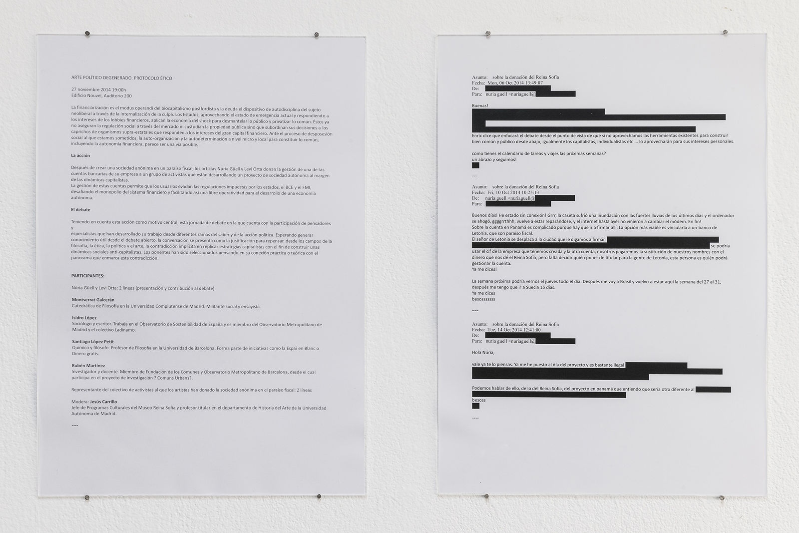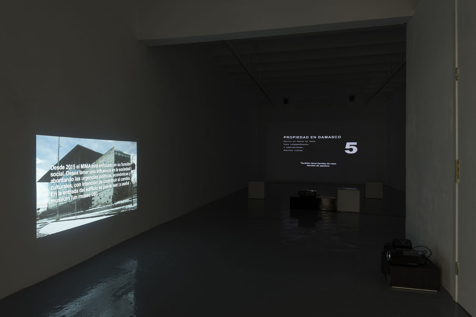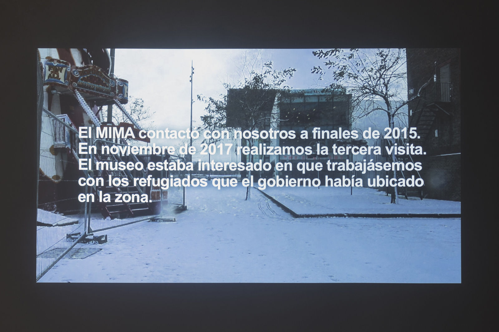 Penetrating reality without hesitation, these projects speculate futures to come or generate juridical-legal structures so that they can build alternatives to the stated. Territory, home, exodus, migrations, colonial order, right to housing, war, hunger, economy or knowledge emerge from the actions, meetings, discussions and alliances that these artists articulate around their practice which makes it possible to imagine the future consequences of our actions. This exhibition gathers some works that are projected towards the future; generating a dialogue between two practices that at times collide while at other times might be aloof from each other without losing a clear connection