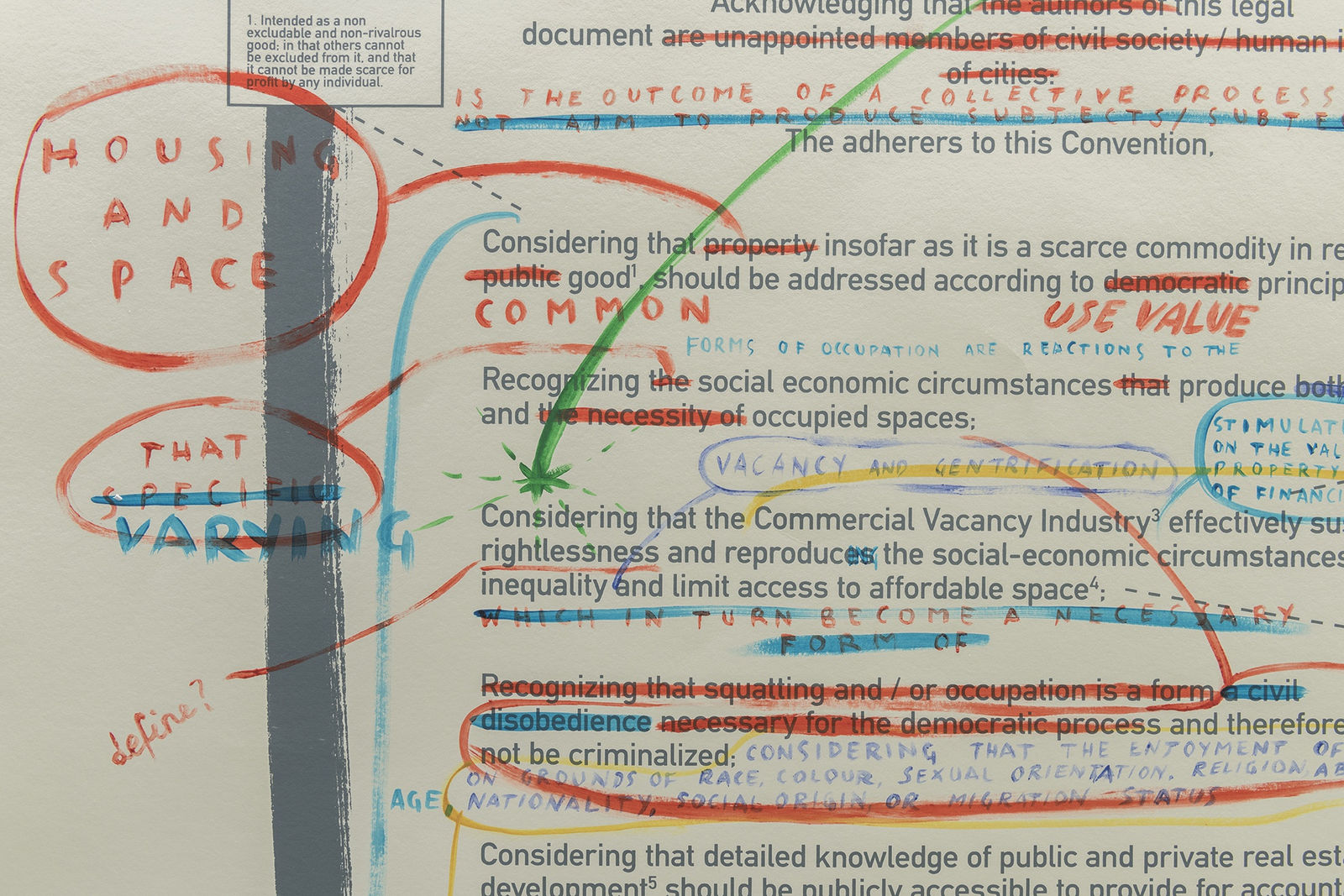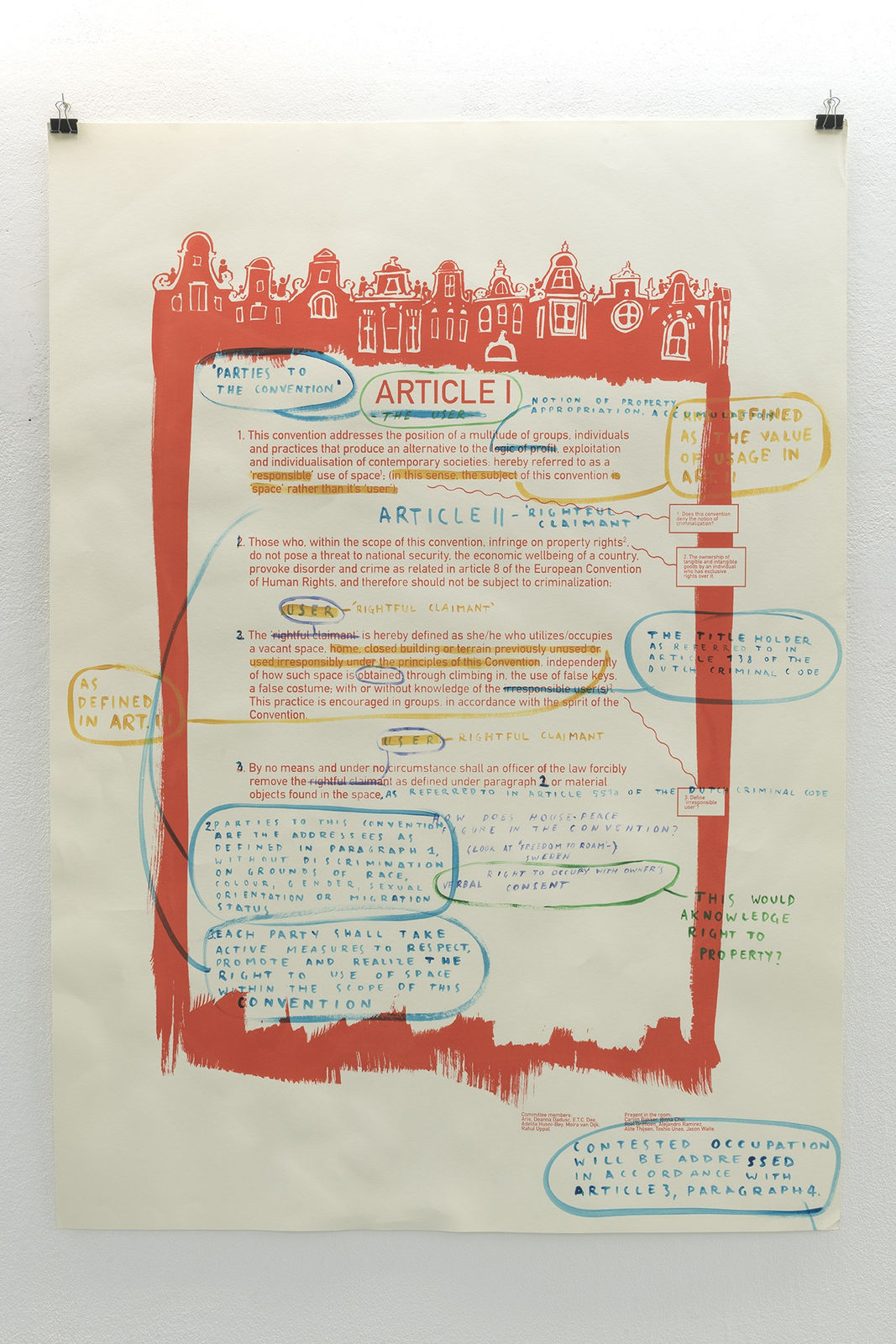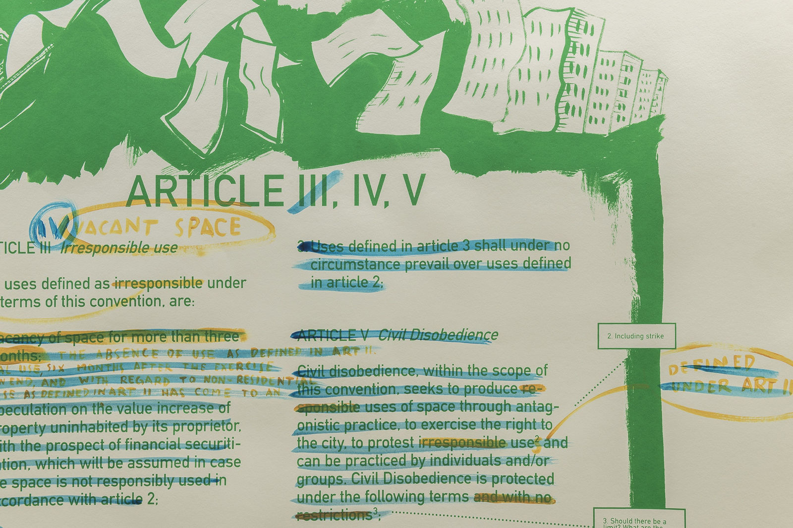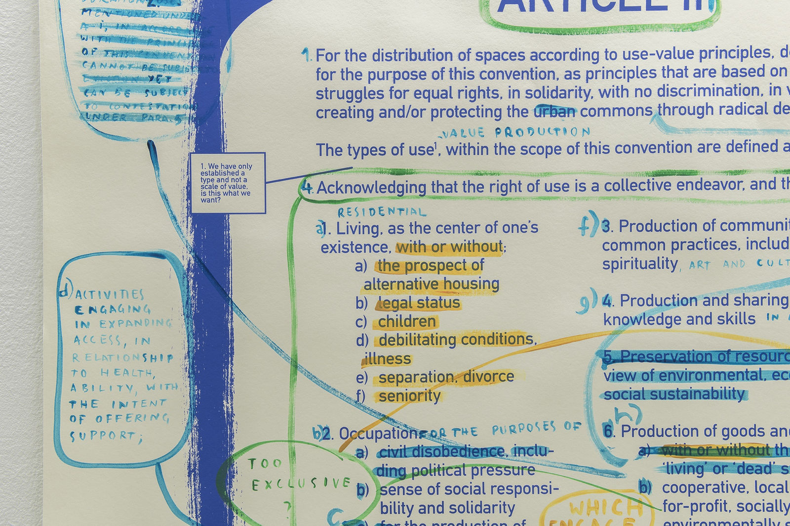 Penetrating reality without hesitation, these projects speculate futures to come or generate juridical-legal structures so that they can build alternatives to the stated. Territory, home, exodus, migrations, colonial order, right to housing, war, hunger, economy or knowledge emerge from the actions, meetings, discussions and alliances that these artists articulate around their practice which makes it possible to imagine the future consequences of our actions. This exhibition gathers some works that are projected towards the future; generating a dialogue between two practices that at times collide while at other times might be aloof from each other without losing a clear connection