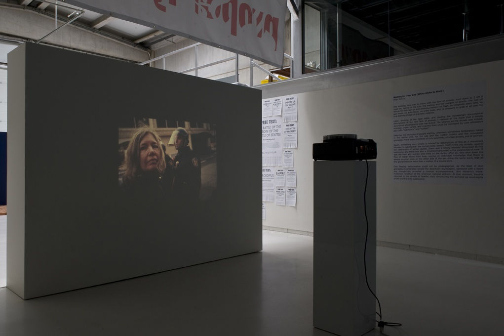 This exhibition is inspired by Harvey’s concept. It examines the rebel city as a site of anti-capitalist frictions and insurrections. The featured works cite the “Battle of Seattle“, Occupy Wall Street, anarchism’s role as a key theoretical source for contestation, and the financialization of daily life. They engage with dissent symbolically, by evoking the intellectual roots, iconography, and material culture of protest.